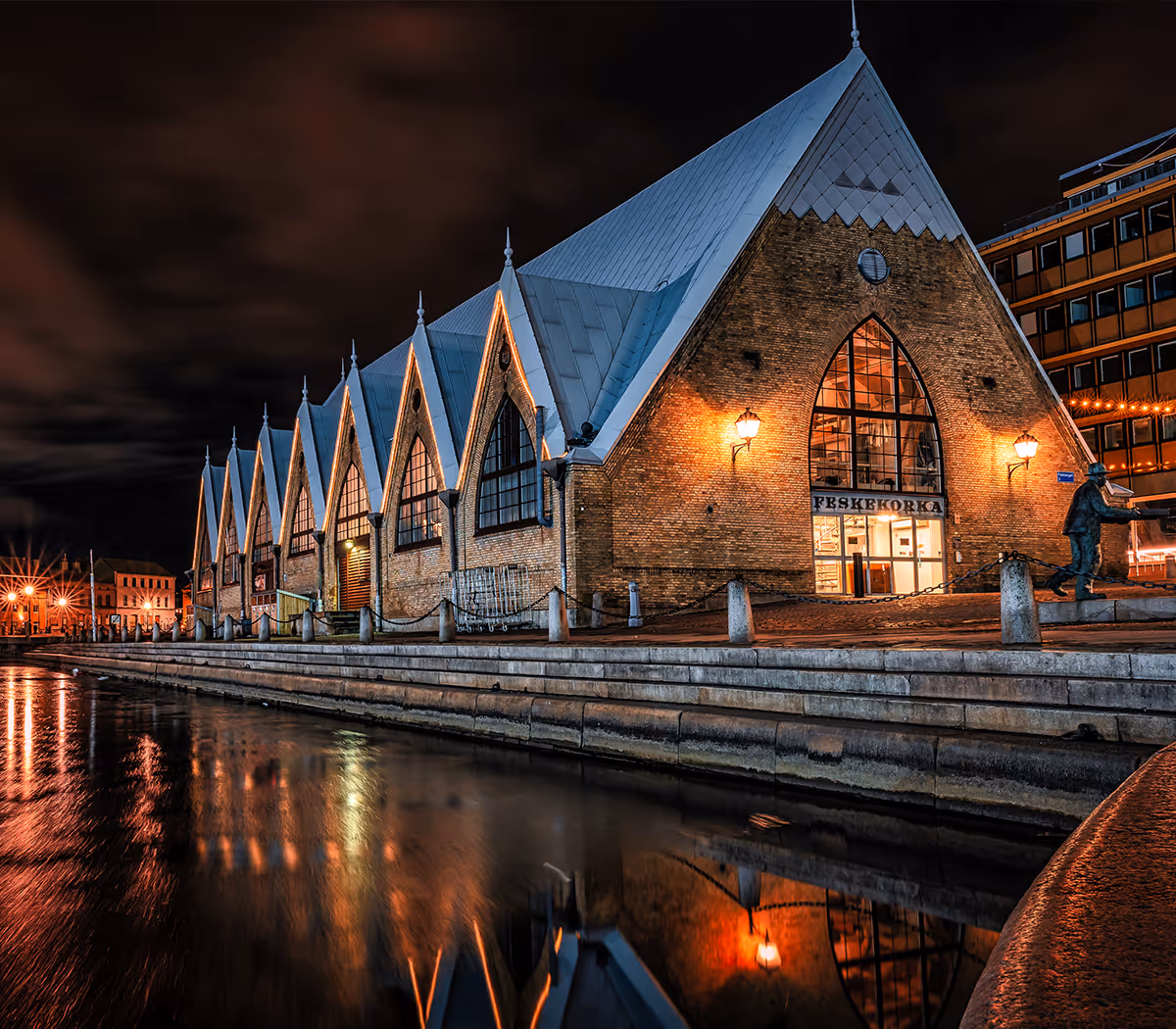 Feskekörka – Göteborgs historiska fiskhall och matdestination vid kanalen. Feskekörka är en av Göteborgs mest älskade och välkända platser – en kombinerad fiskhall, saluhall och matdestination mitt i centrala Göteborg. Här hittar du färsk fisk, skaldjur, delikatesser, ostron, hummer, räkor, caviar och mycket mer.